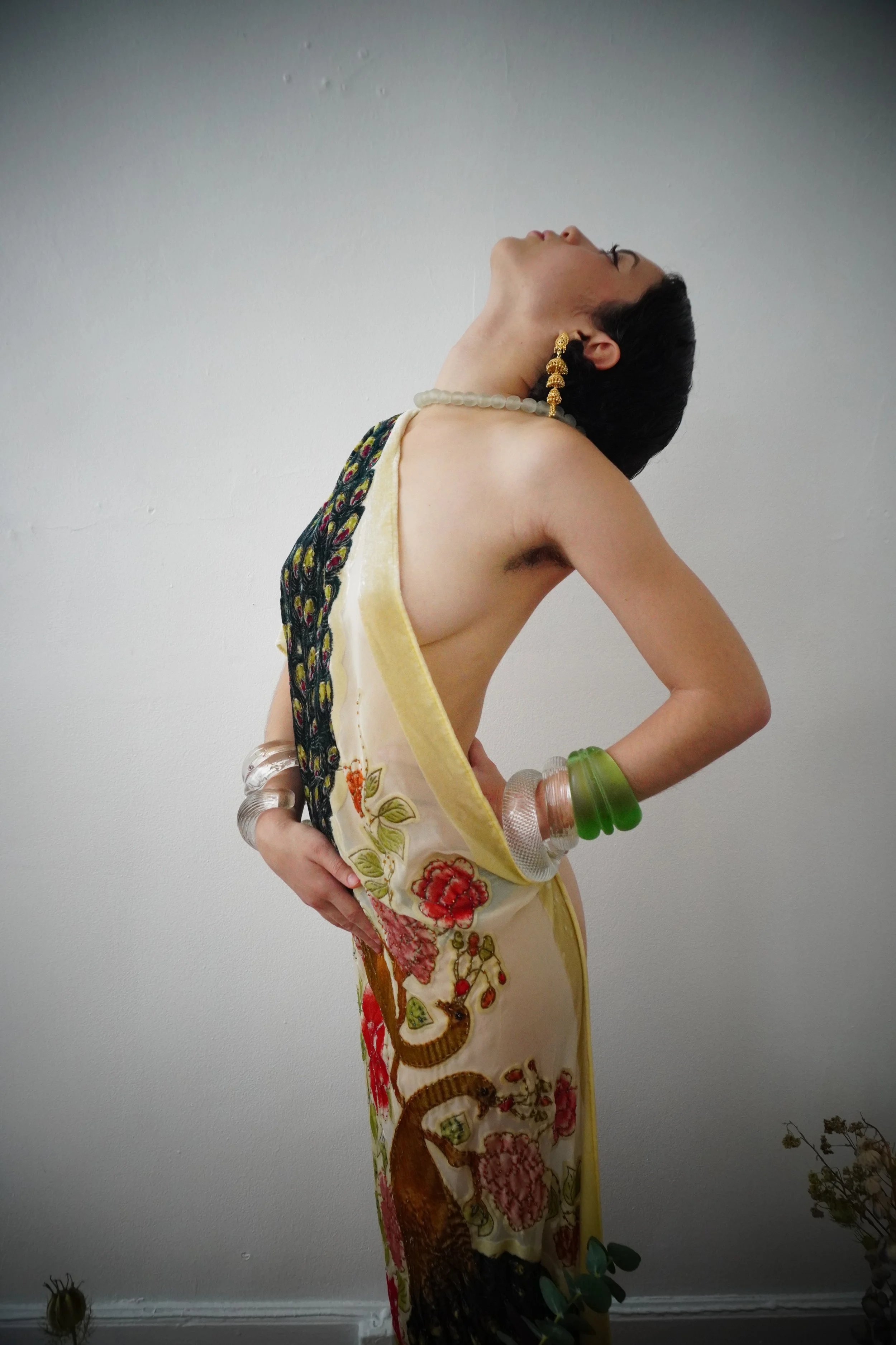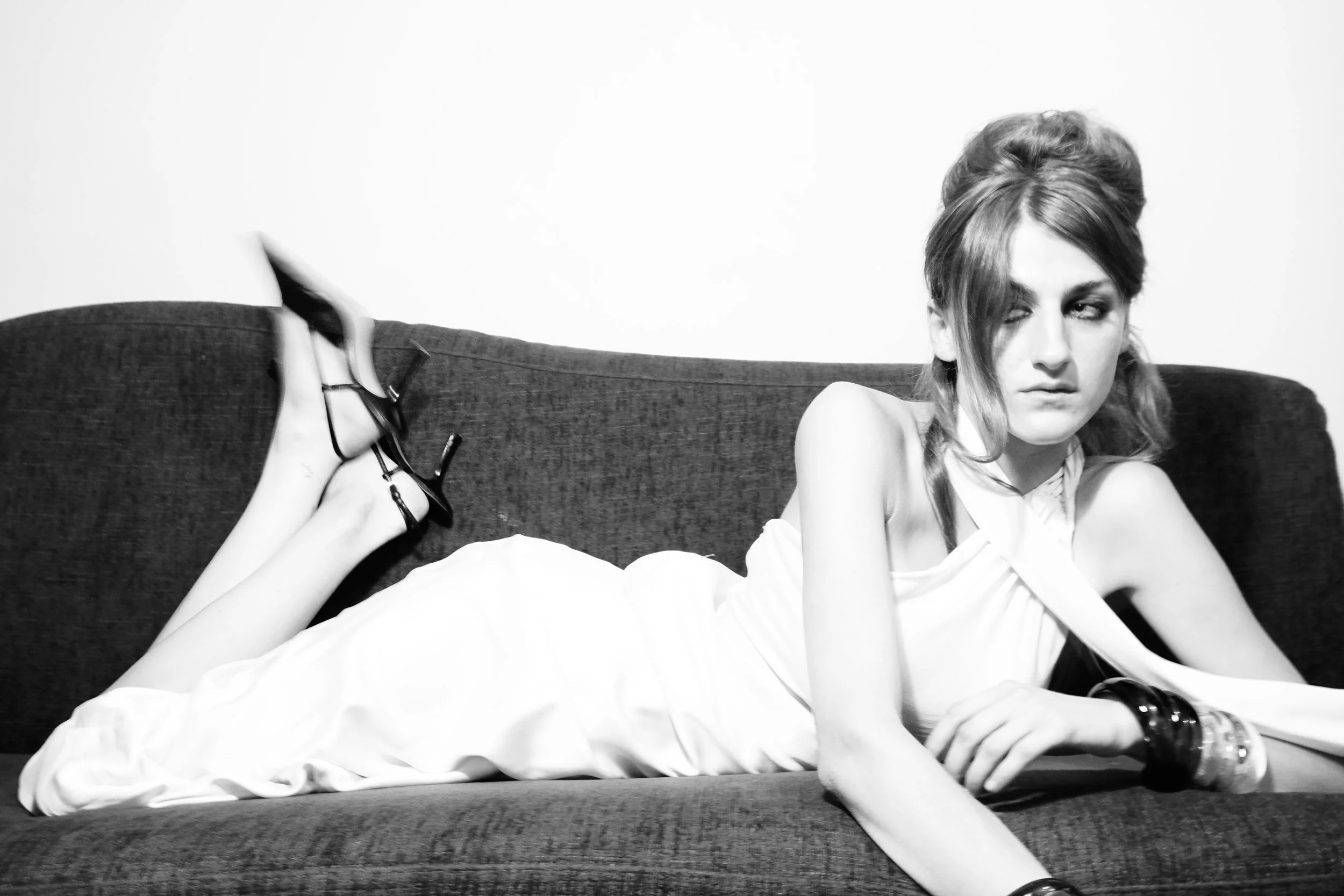 GIRLS IN GLASS #1 Isabella wears Clear OUROBOROS Bangle and OPTICAL & ILLUSION cuffs, kryptonite ROMAN cuff, and Raw Copper encased ROMAN Bangle dress and photos by Ellison Baus Brooklyn 2024