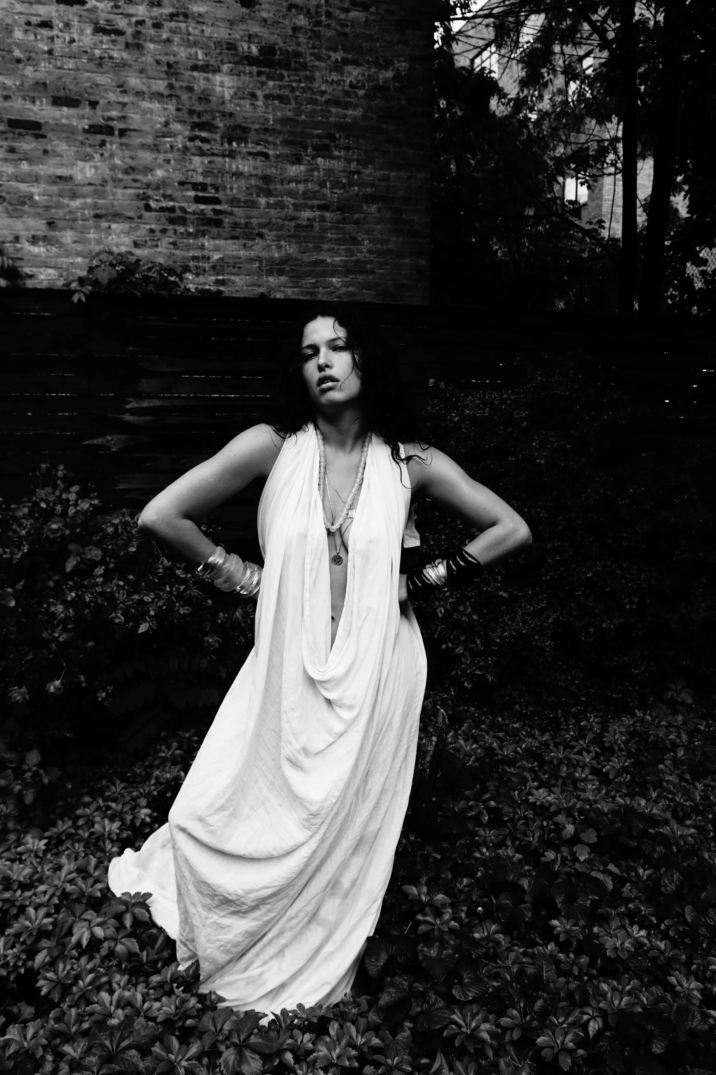 ROMAN in Frosted, Clear and Venetian formulated Smoke and Imperial cuff on Fidan Sultan, photos, dress, by Ellison Baus Brooklyn 2023